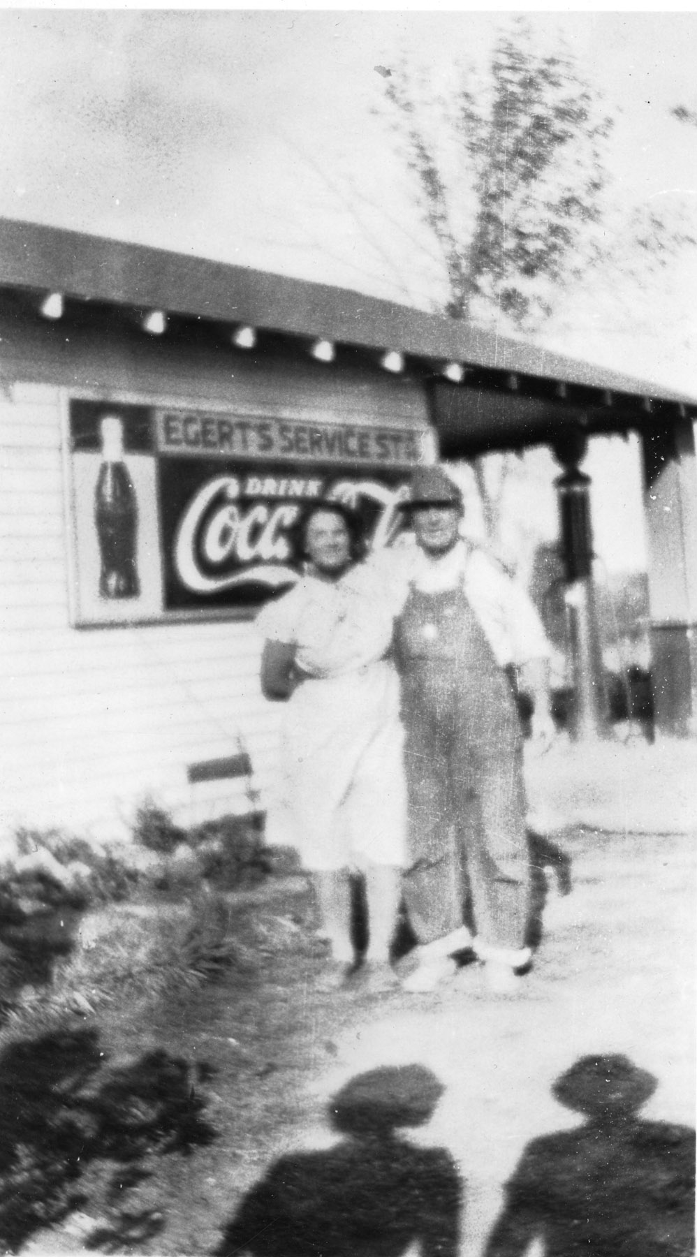 Henry and Emma Egert stand beside their service station, located five miles north of Eskridge on the corner of K-4 Highway and North Branch Road. Photo courtesy Emmett and Carolyn Burleson.