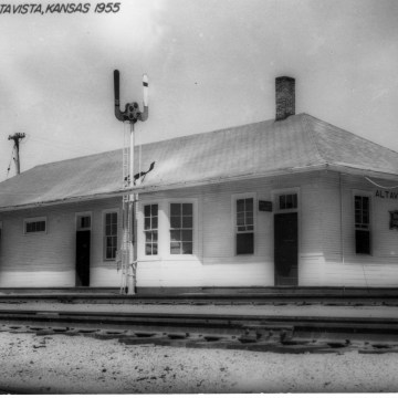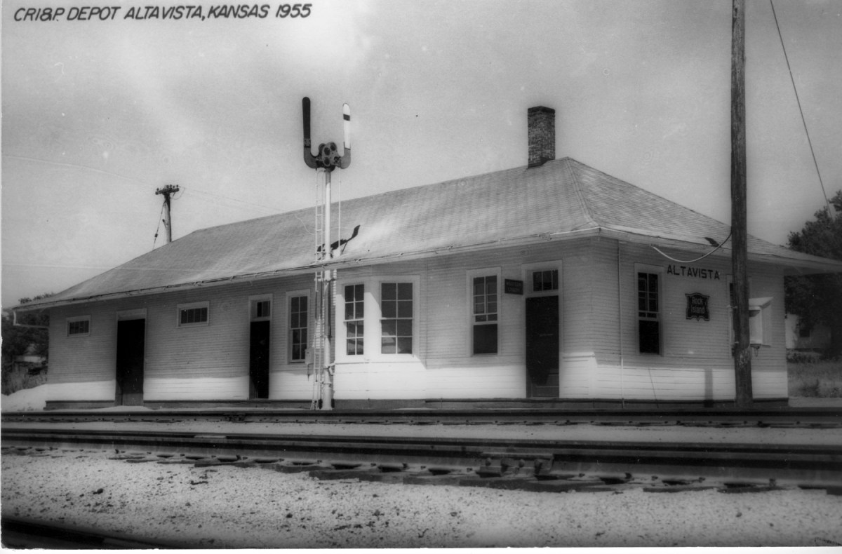 This real photo postcard view of the CRI&P depot at Alta Vista, Kansas is dated 1955.