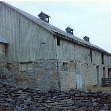 This view of the Peter Thoes barn was taken in the early 1980s before the far end of the barn suffered a collapse and was removed. Photo by Greg Hoots.