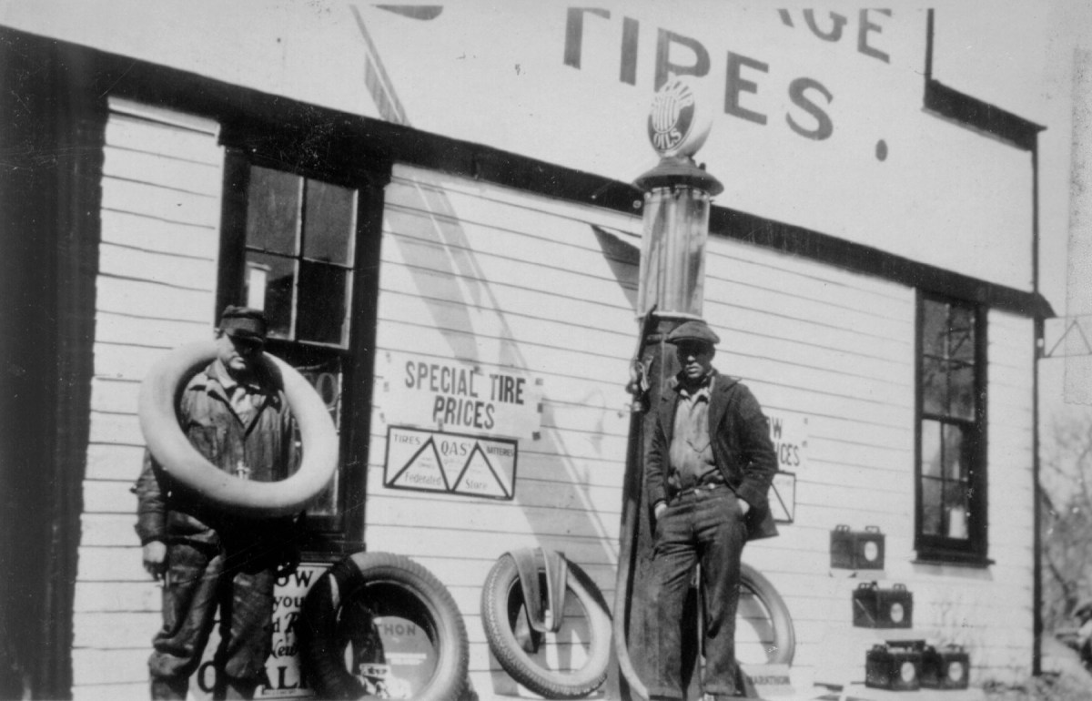 Walter Black, left and Ed Fisher, proprietor of the Southwest Trail Garage pose for this 1930s photo. The garage, built by Arthur Bowker, was located at the site of Maple Hill Fire District No. 4’s station, today. Photo Courtesy Chester Todd.