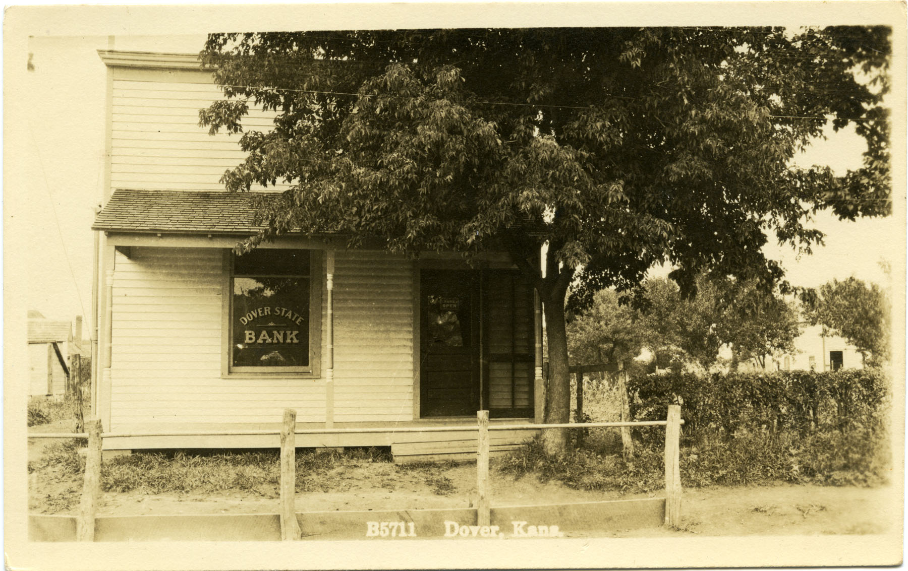 The Dover State Bank was located on Southwest 57th Street in Dover, Kansas, next door to Winter’s store. Photo Courtesy Greg Hoots.