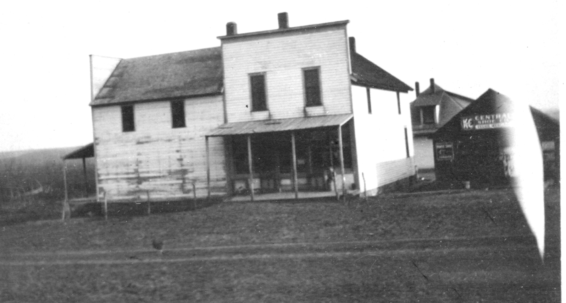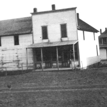 The Keene Store opened at the intersection of K-4 Highway and Bradford Road in 1874. Notice in this view that when this photo was taken the store was two stories and had full storefront on the east side of the building as well as the north side. An early blacksmith shop is visible at the right. When this photo was taken, the road was still mud and the store had no gas pumps. Photo Courtesy Ida Thomas.