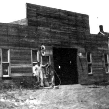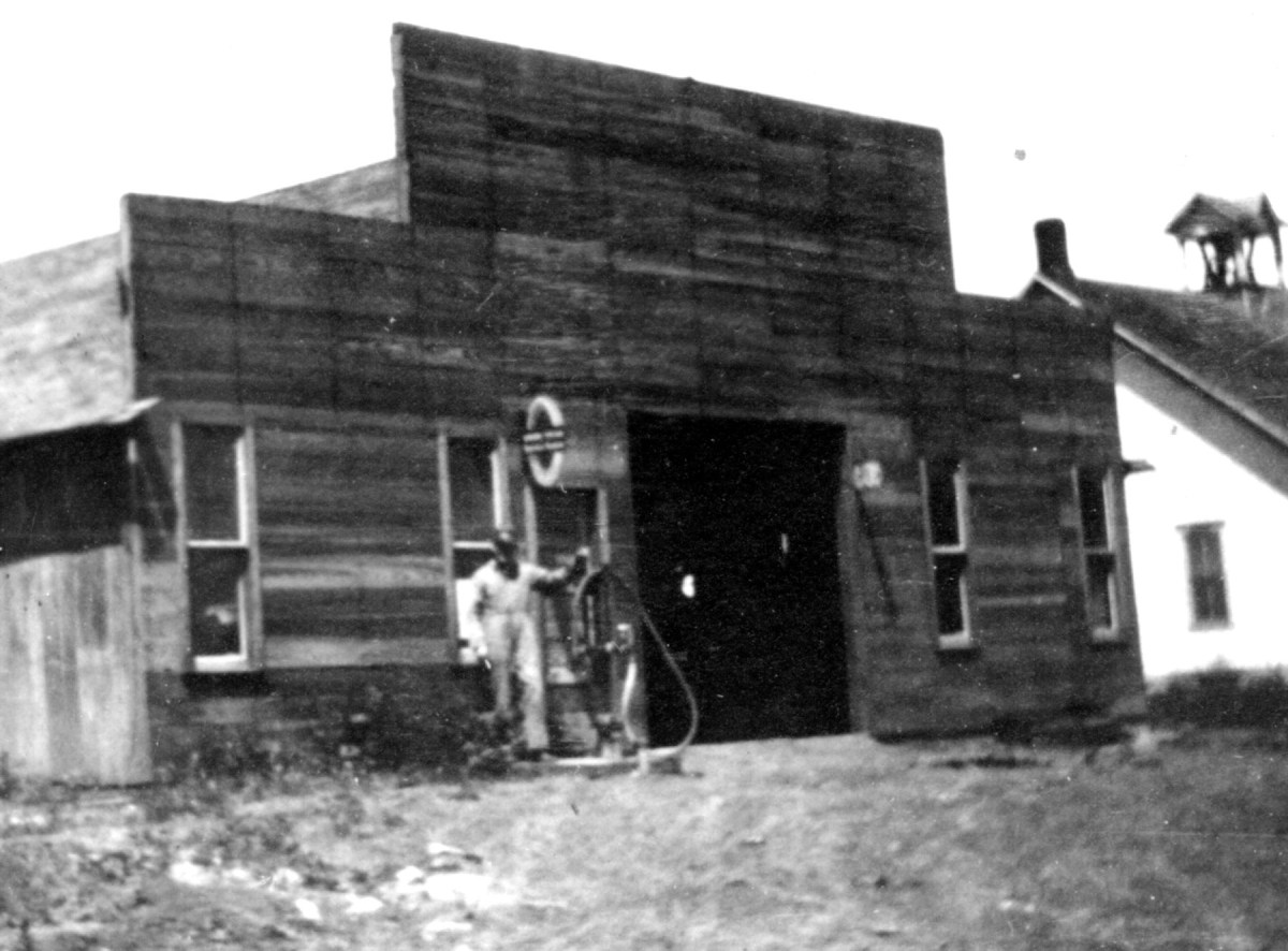 An unidentified an stands in front of the blacksmith shop at Keene, Kansas in this view, circa 1920. Notice that the Keene School is visible to the right, located quite near the blacksmith shop. Both buildings were located at the intersection of K-4 Highway and Missile Base Road.