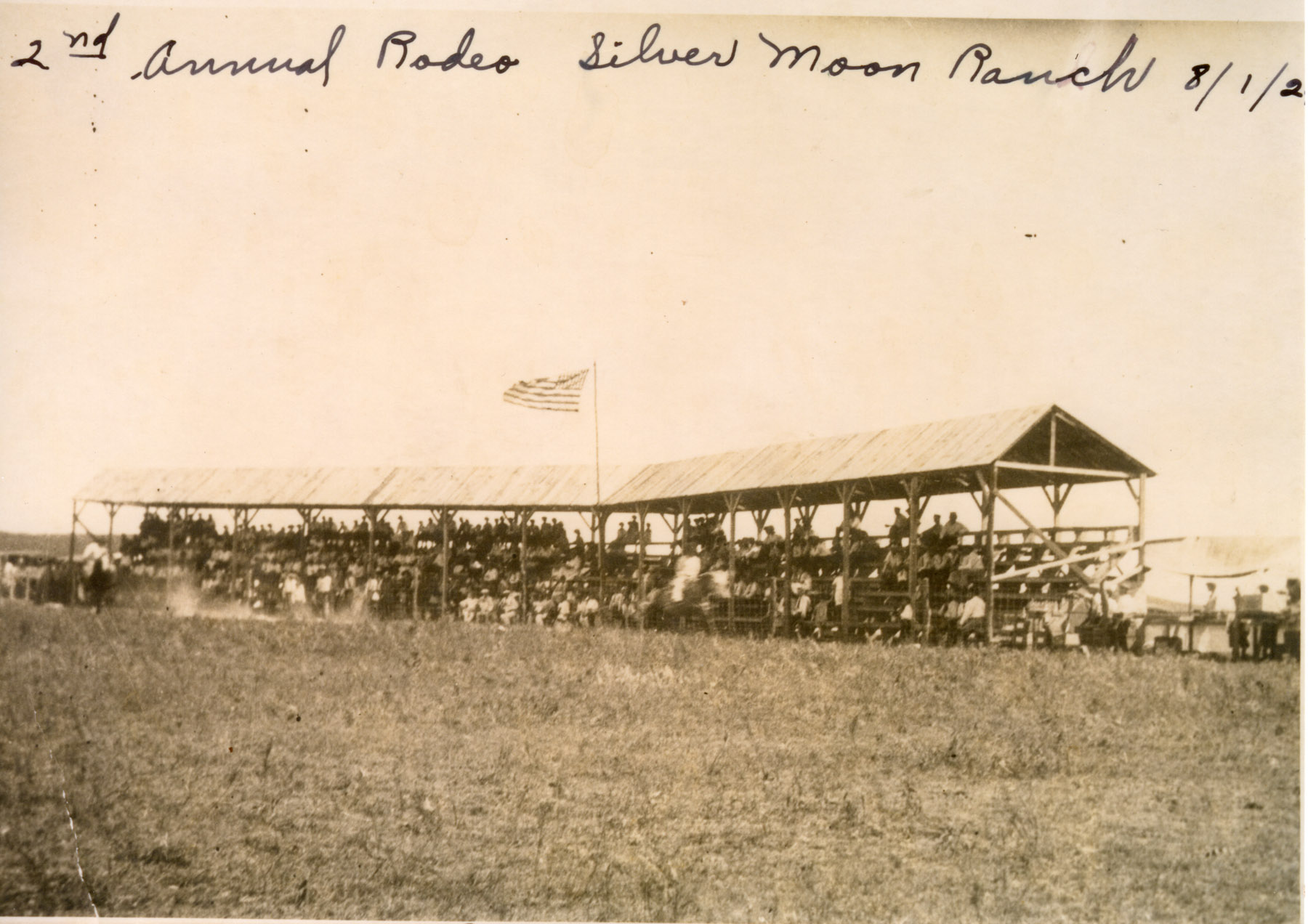 The Silver Moon Ranch rodeo arena was located in Farmer Township of Wabaunsee County on the Frank Ranch. The ranch hosted a gala annual rodeo which drew large crowds from across the state. Photo courtesy Trish Ringel.