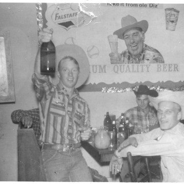 These Flint Hills cowboys stop for a small celebration after a successful rodeo, circa 1959. Dale “Little Red” Wilson, left was known to be a great storyteller, and a second, unidentified cowboy, center, and Ron Pletcher appear to be enjoying the tale. Photo courtesy Shirley Pletcher.