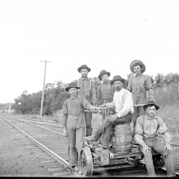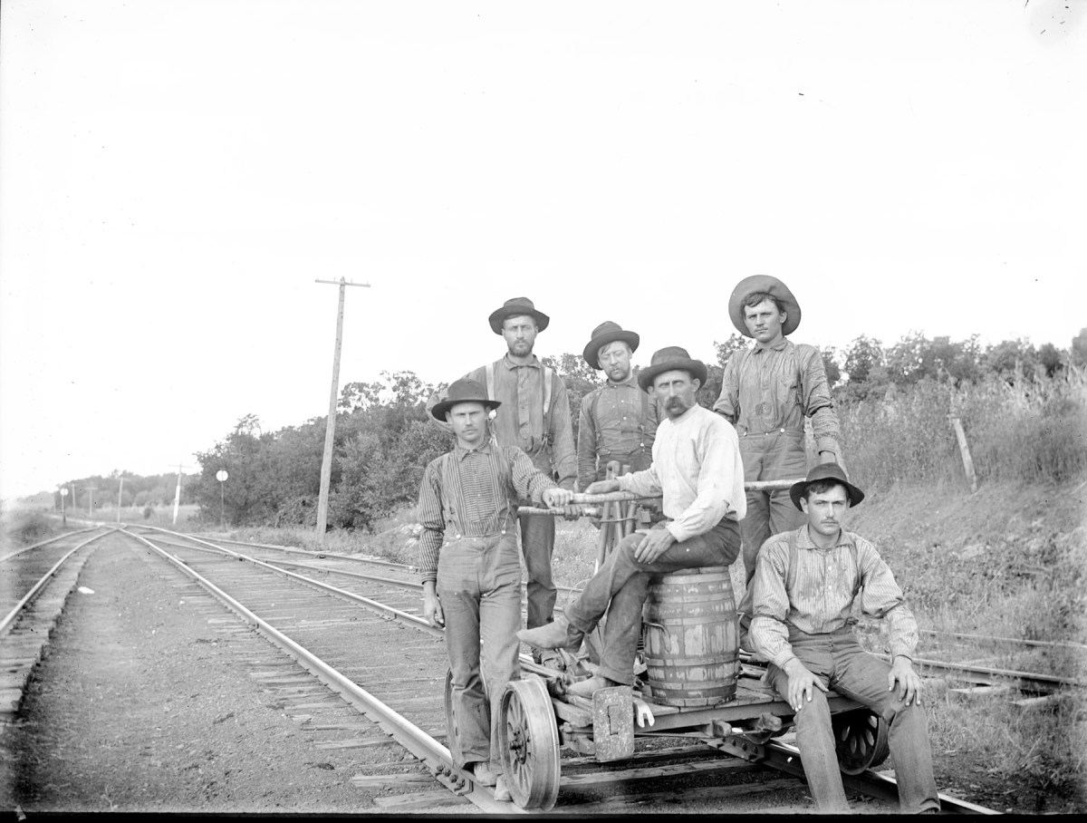 Gus Meier photographed the Rock Island section crew in this view from the 1890s. This is one of the “lost photos” discovered in an Alma attic where Meier had lived in the 1890s. Photo courtesy Paul Gronquist.