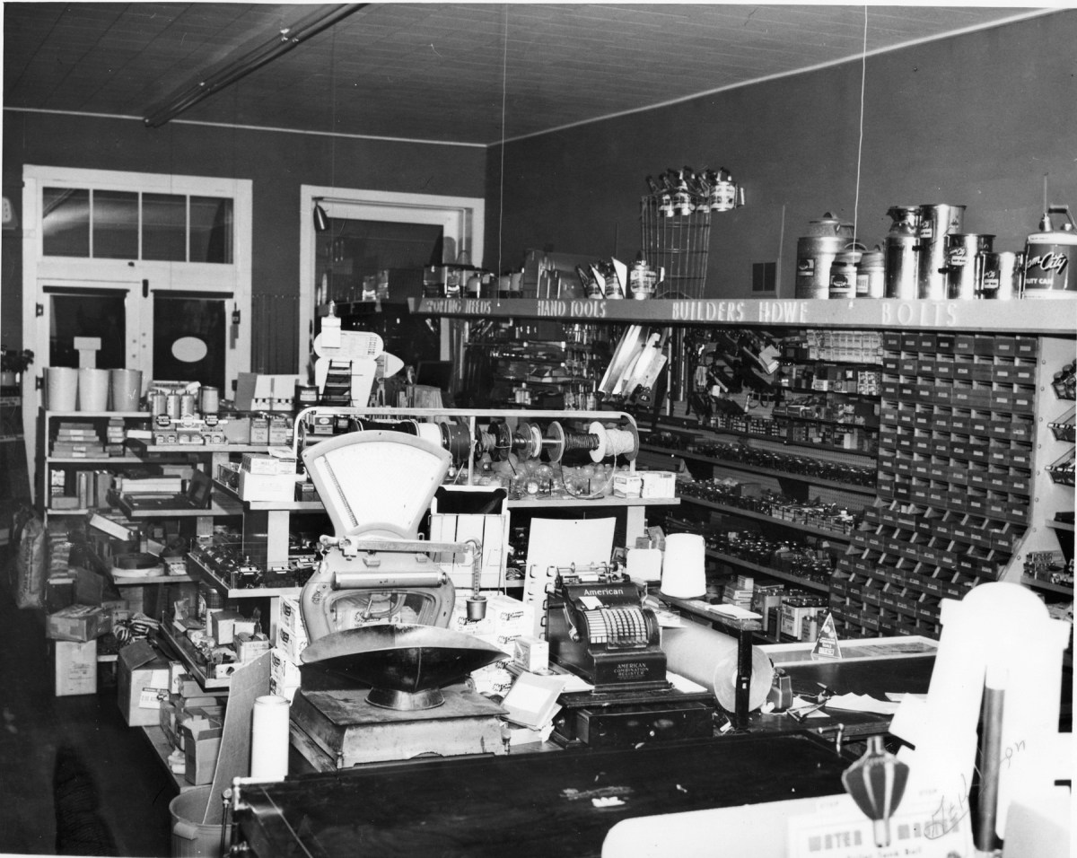 This 1950s interior view of Hendricks Hardware in Alma, Kansas shows the wide variety of merchandise and builders’ supplies sold at the hardware store. Photo courtesy Gwen Hendricks