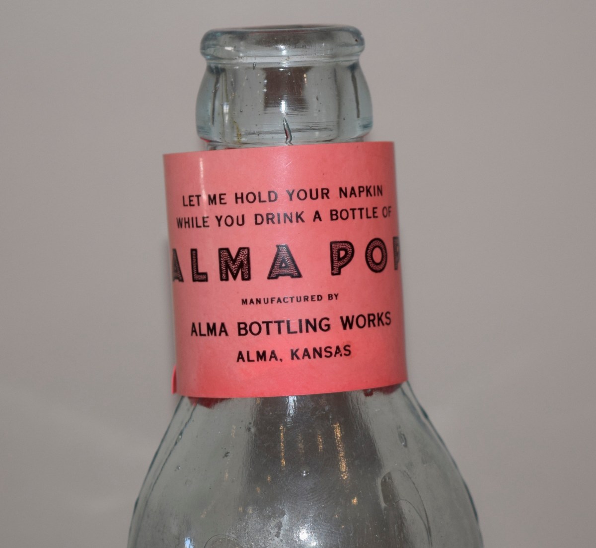 This napkin ring was a promotional or advertising item of the Alma Bottling Works, Alma, Kansas.