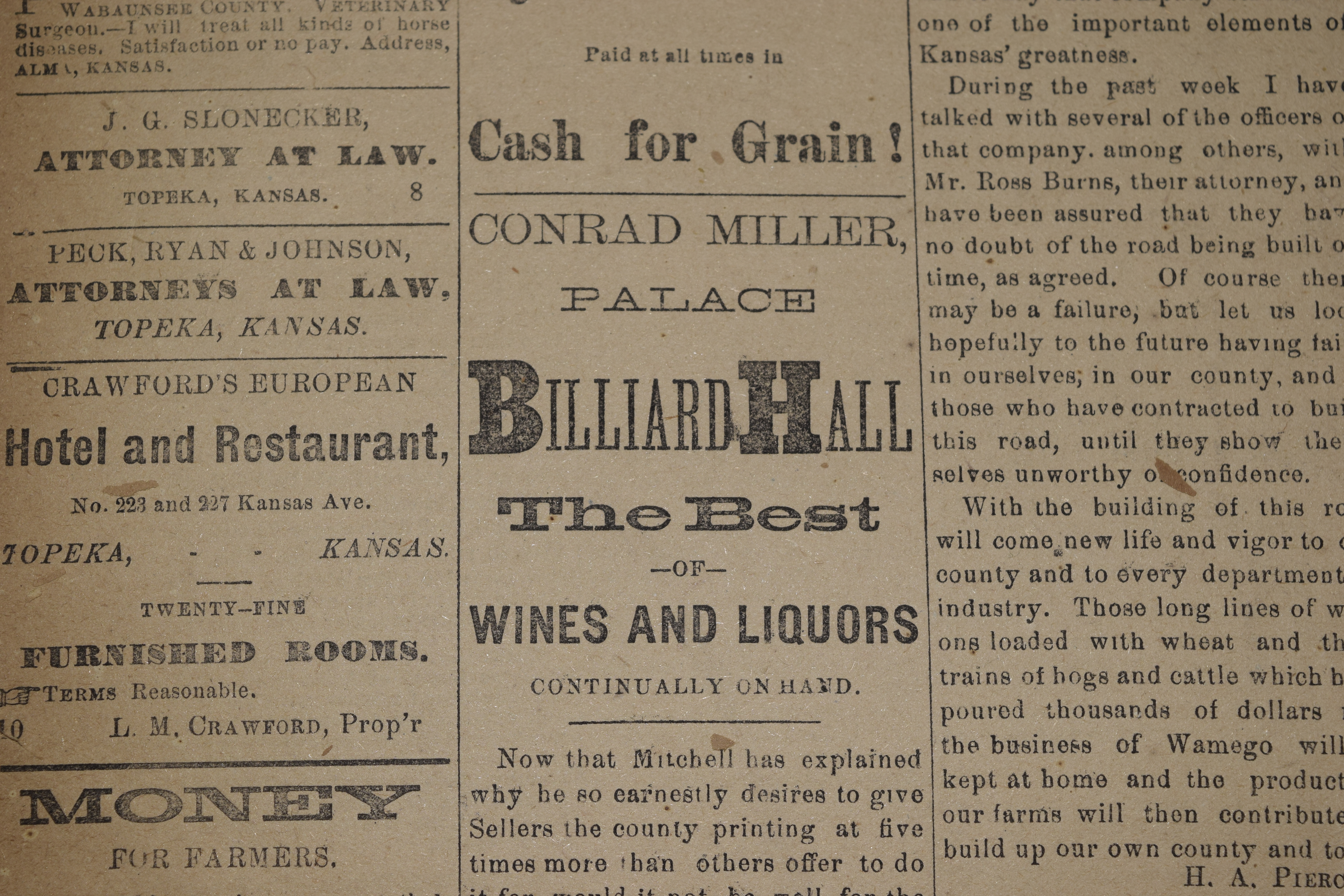 Conrad Miller, also known as Conrad Mueller, operated the Palace Billiard Hall when Statewide Prohibition was enacted in 1881. Mueller was arrested for violating the prohibitory laws and closed his billiard hall, opening a hardware store in the same building.