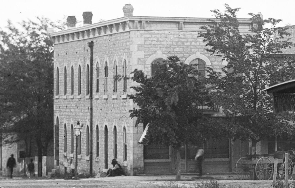 The Horne family’s saloon was located in this building from the late 1880s through the early 1900s. In this view from the 1890s Joker Horne’s ice house is visible at the far left of the photo.