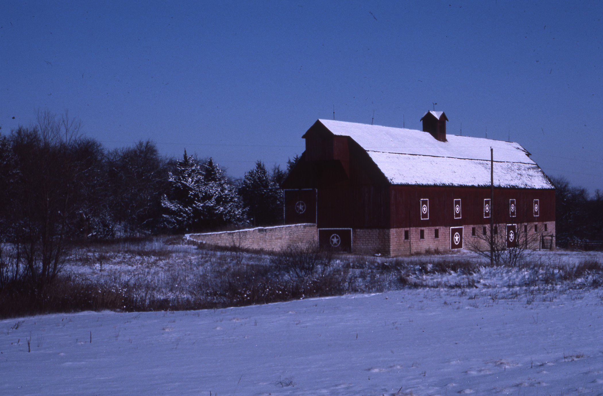 The Henry Sump barn was photographed several times by Charles Herman. Sump had this barn built on his Alma farm in 1913. This winter view dates from the 1970s.