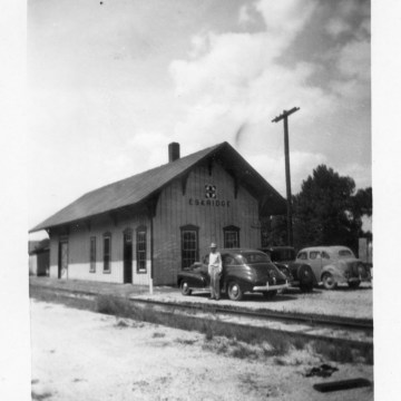 This early 1940s view of the Atchison, Topeka & Santa Fe depot at Eskridge looks to the northwest.