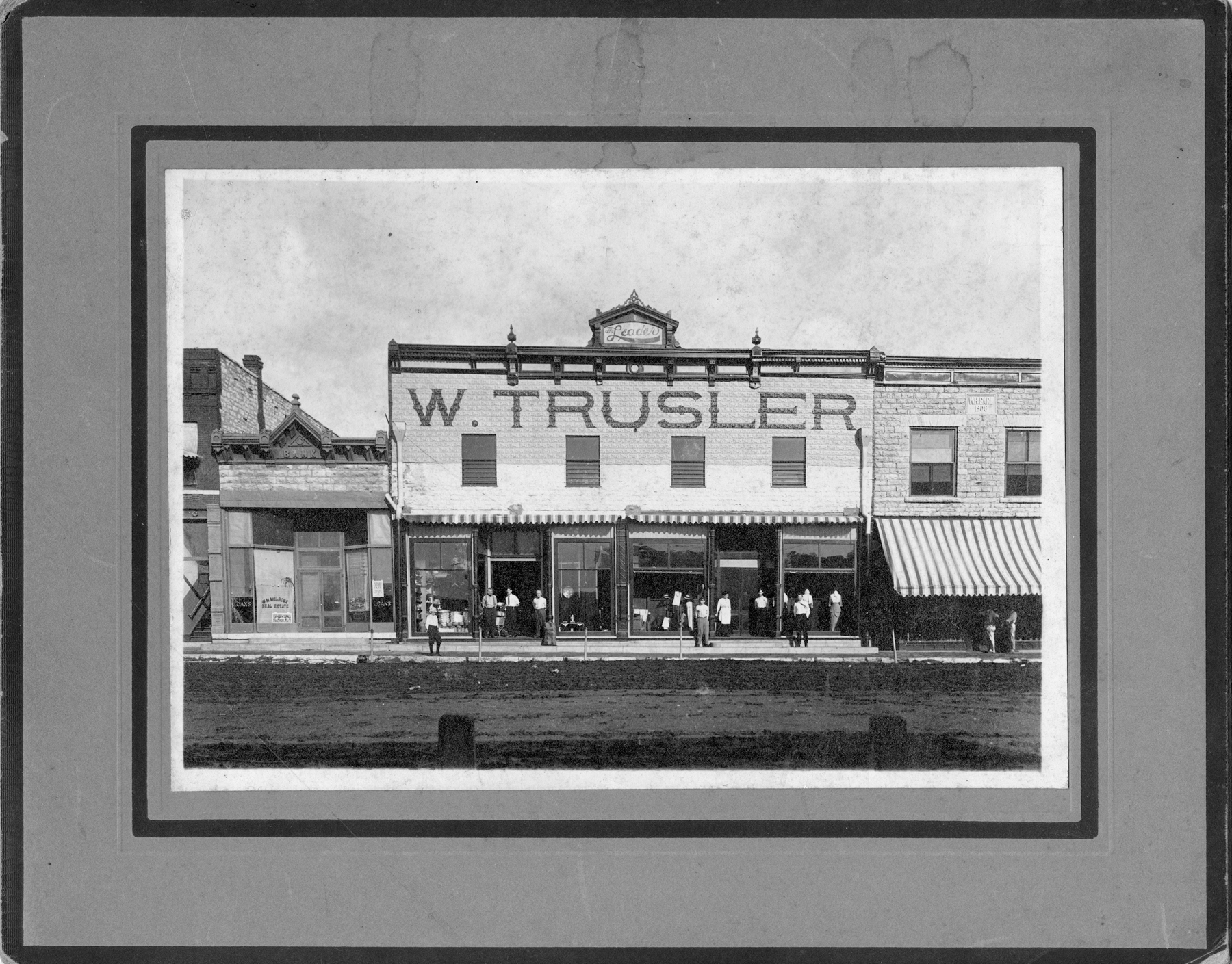 Trusler Hardware, one of the first businesses established in the “new town” of Eskridge, Kansas in 1880 is seen in this view, circa 1910.