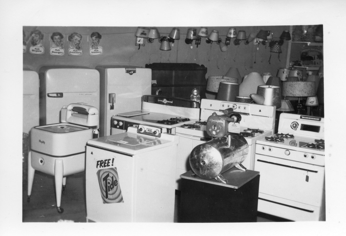 When this photo was taken in the early 1950s, Dunn Home Supply offered a full line of appliances, including both “ringer” washers and the new fully automatic variety.