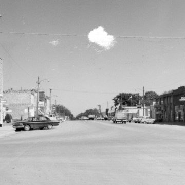 Dean Dunn took this photo of Main Street in Eskridge, looking north in about 1964. Notice that there were three new car dealerships in Eskridge at this time, the Ford dealership at the far left, the Chevrolet dealership, seen at the right, and the Plymouth dealership, located in the next block north.