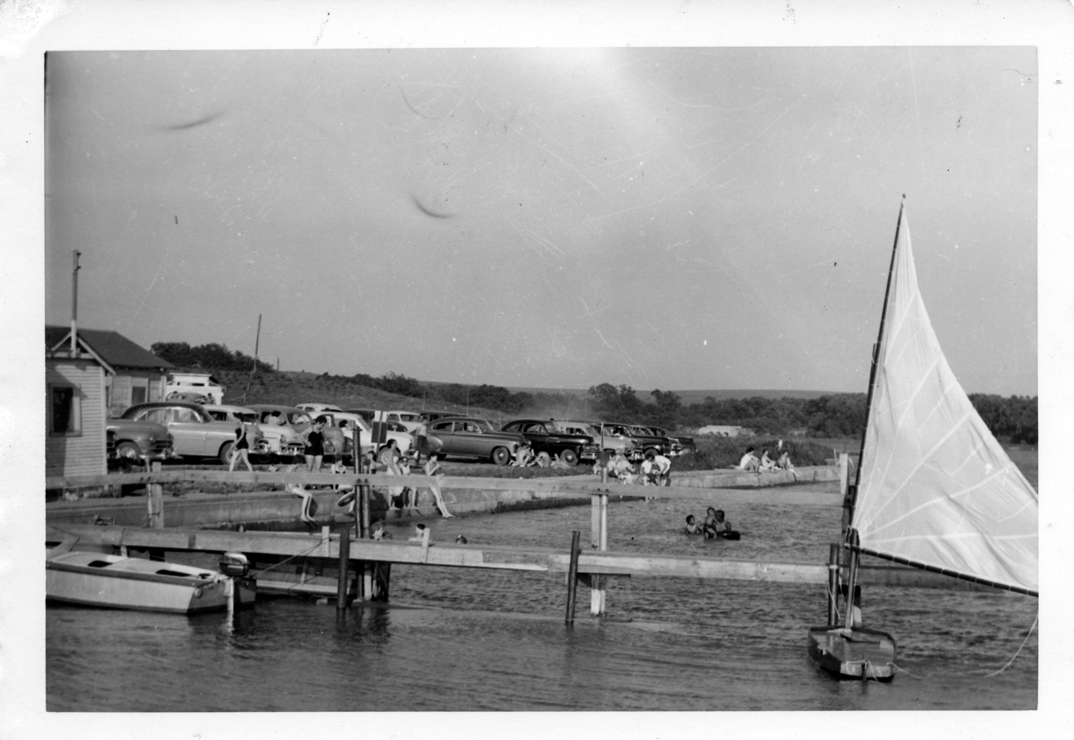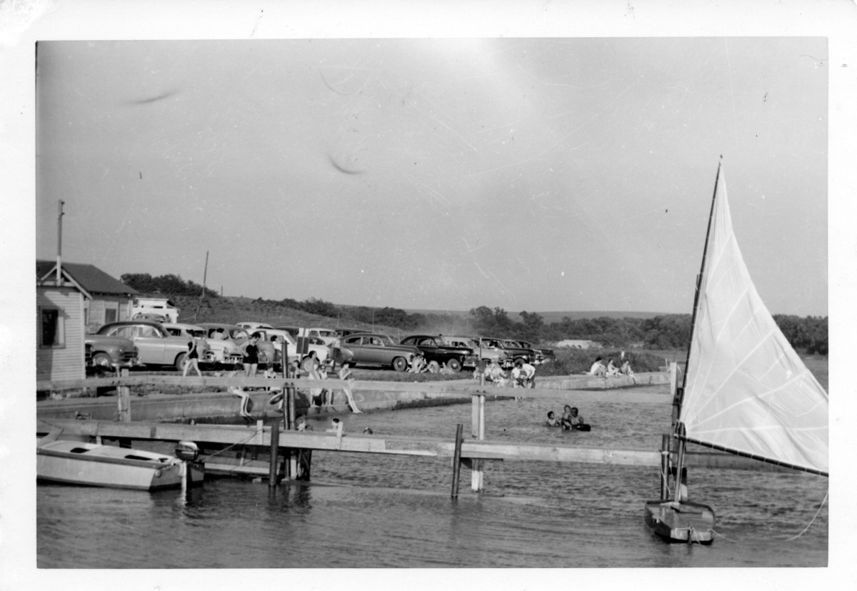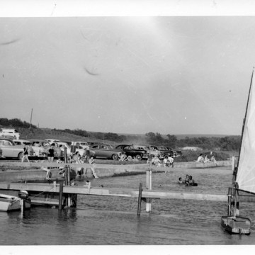 Dean Dunn photographed the public dock and beach at Lake Wabaunsee in this view from the early 1950s.