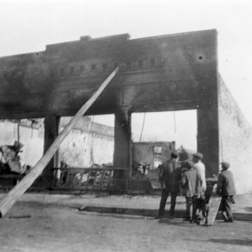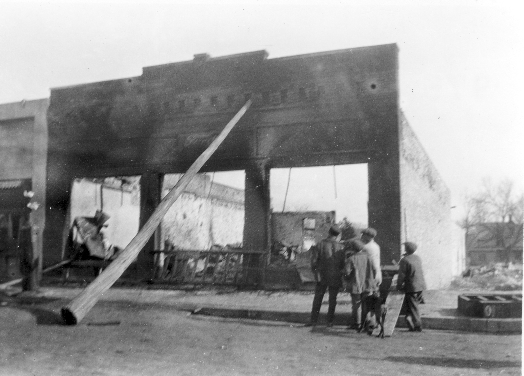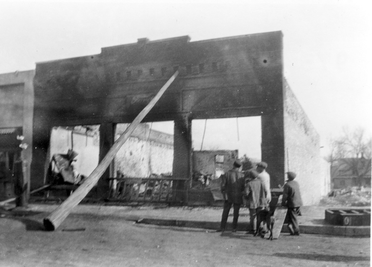 The R. C. Day Ford dealership, located at 212 South Main Street in Eskridge fell victim to a fire which gutted the business on February 4, 1921. A telephone pole was propped against the building to prevent the façade from collapsing into the street, and unbelievably, the building’s brick face was saved and the structure rebuilt.