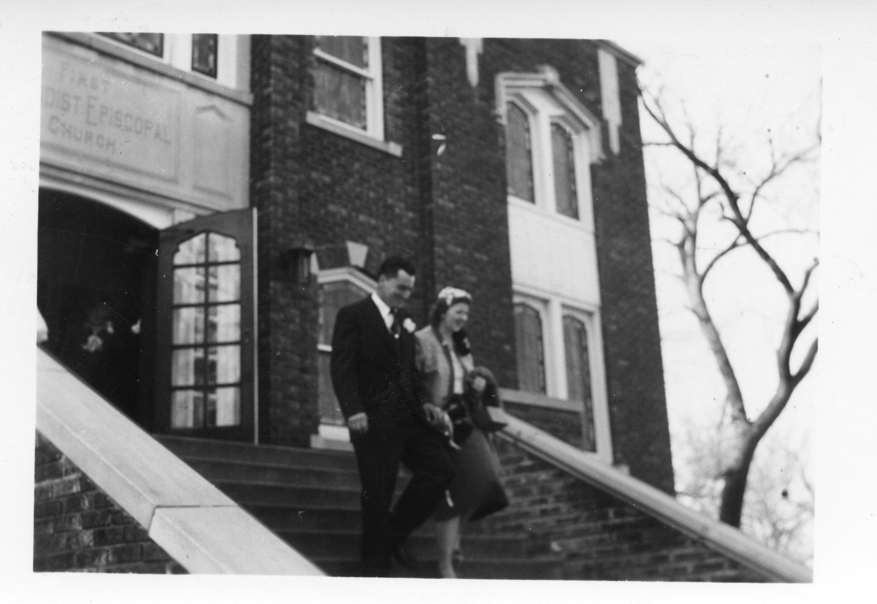 Dean Dunn took this photo of Bing and Barbara Miller emerging from the Methodist Church on the occasion of their wedding on April 9, 1955.
