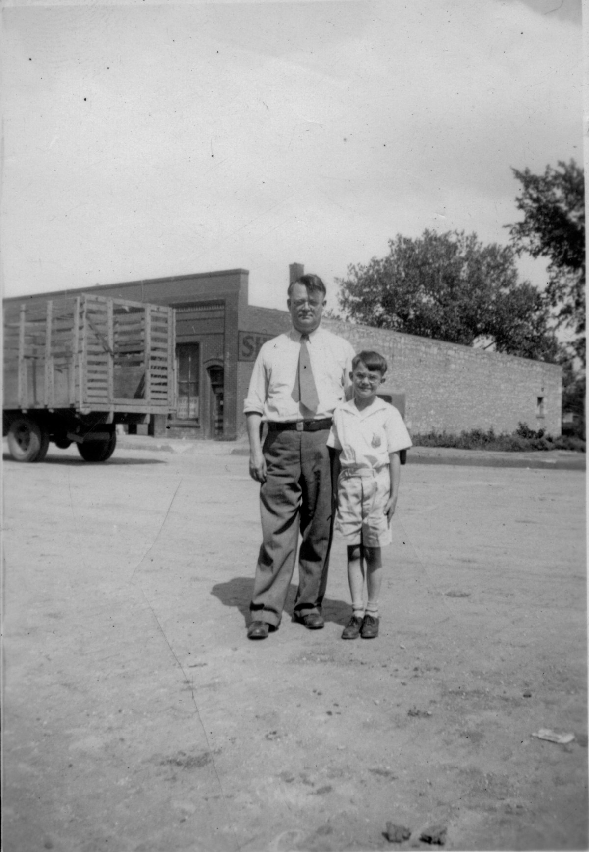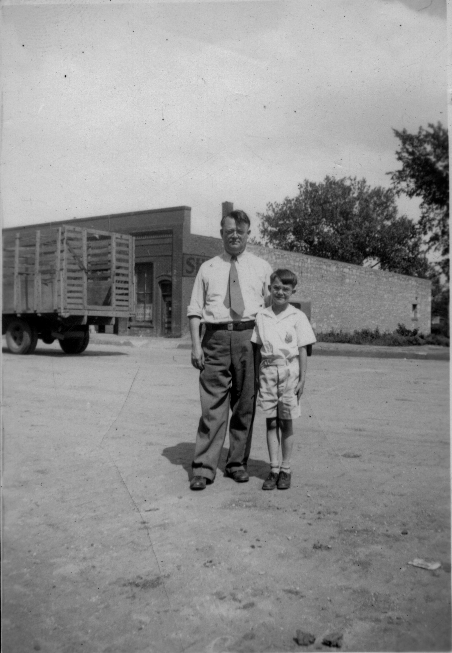 Preston Dunn, left, and Dean Dunn stand on Main Street in this view from the 1930s. Duff Produce is visible in the background.
