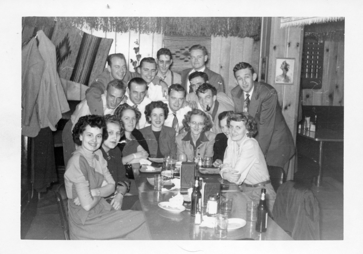 A group of Eskridge residents enjoy an evening at Cap MacKenzie’s Lake Wabaunsee Lounge. Inez Dunn is seated third from the right, and Dean is behind her, with a pipe in his mouth.