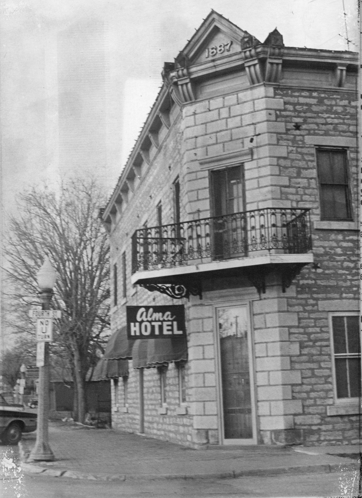 The Alma Hotel was featured in numerous newspaper feature stories during the early 1970s when this view was taken.