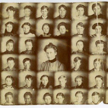 Students and instructor at the Eskridge Public School, circa 1905, including students in the 5th, 6th, and 7th grades.