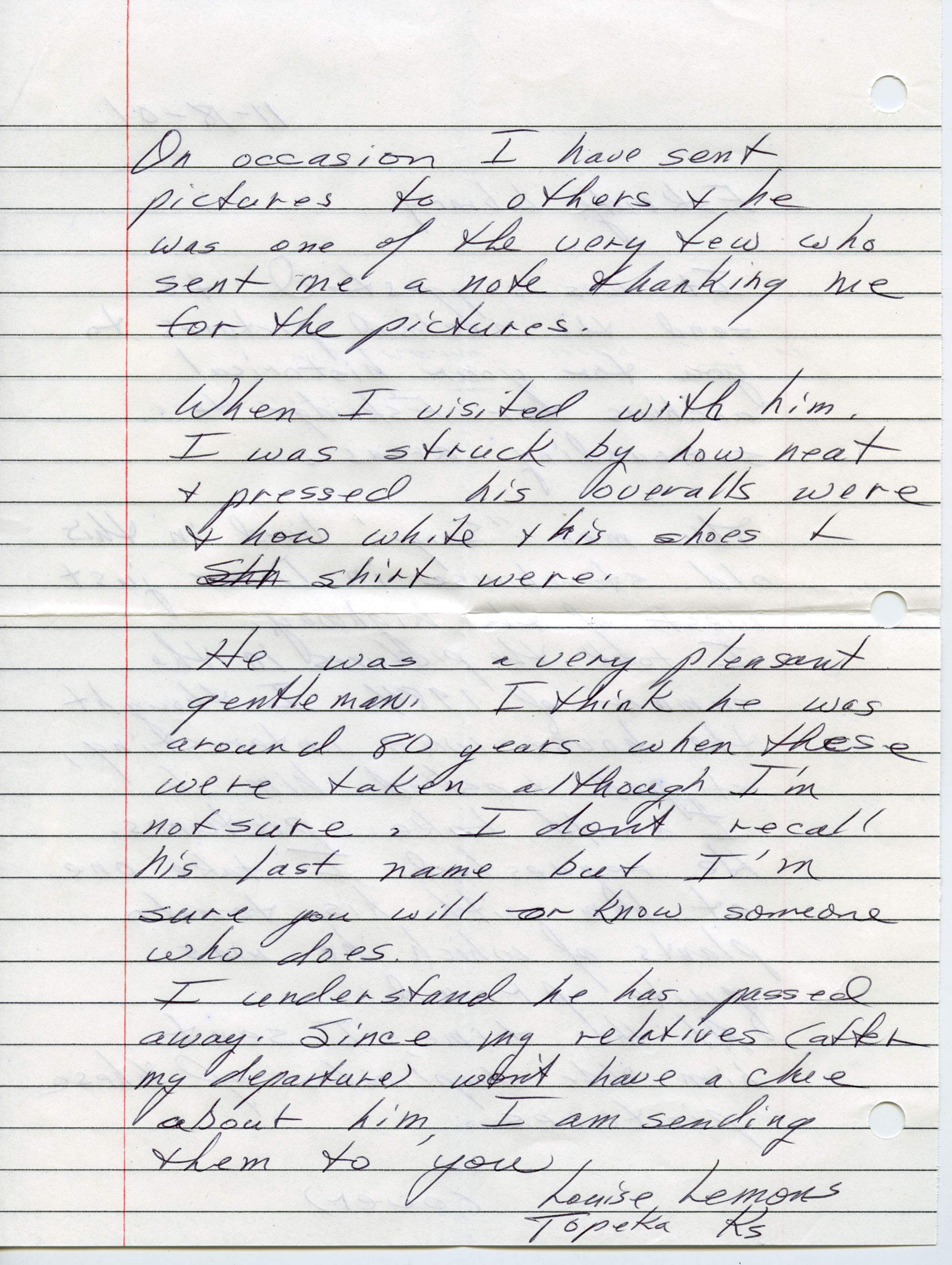 Page 2 of the letter by Louise Lemons concerning her photos of the Slim Sargent home at Dover, Kansas.