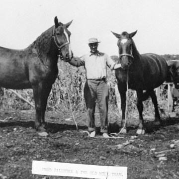 Fred Palenske stands with the “old mill team” at his father’s mill located at Alma, Kansas, circa 1907.