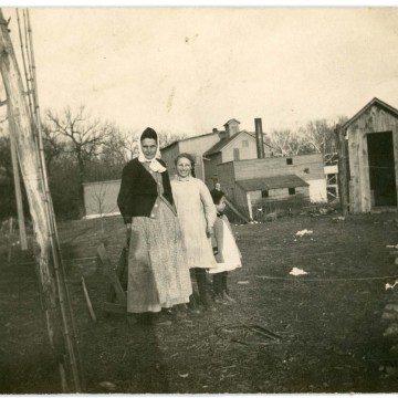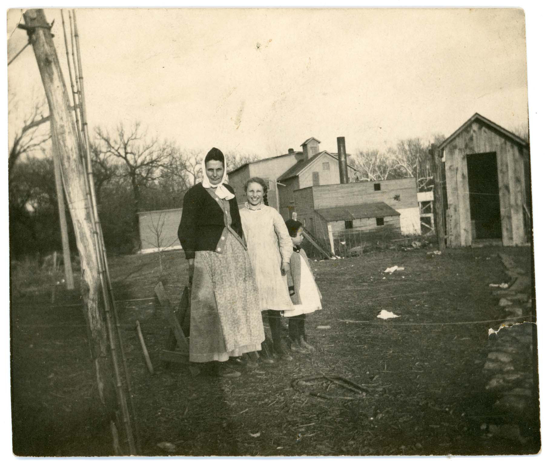 Emma Palenske, left stands with her daughters, Laura, center, and Florence in front of the Alma flour mill, circa 1913. Photo courtesy the Palenske family.