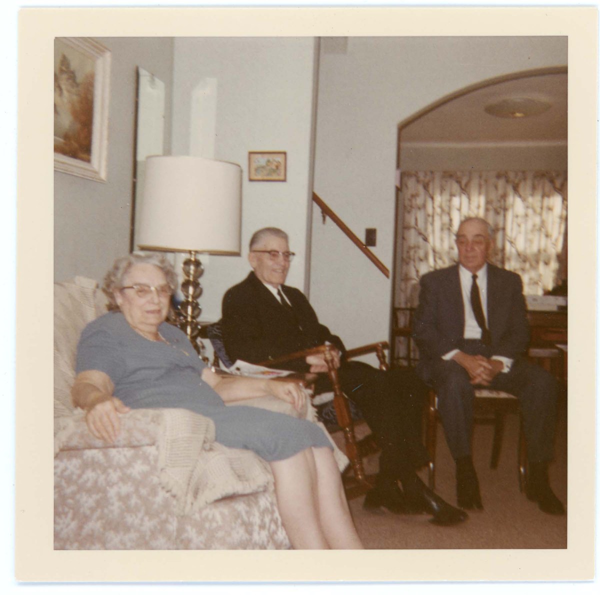 Minnie Zwanziger, left, and her husband, Martin, center, entertain Minnie’s brother, Fred Palenske at their Alma, Kansas home, circa 1966. Photo courtesy the Palenske family.