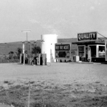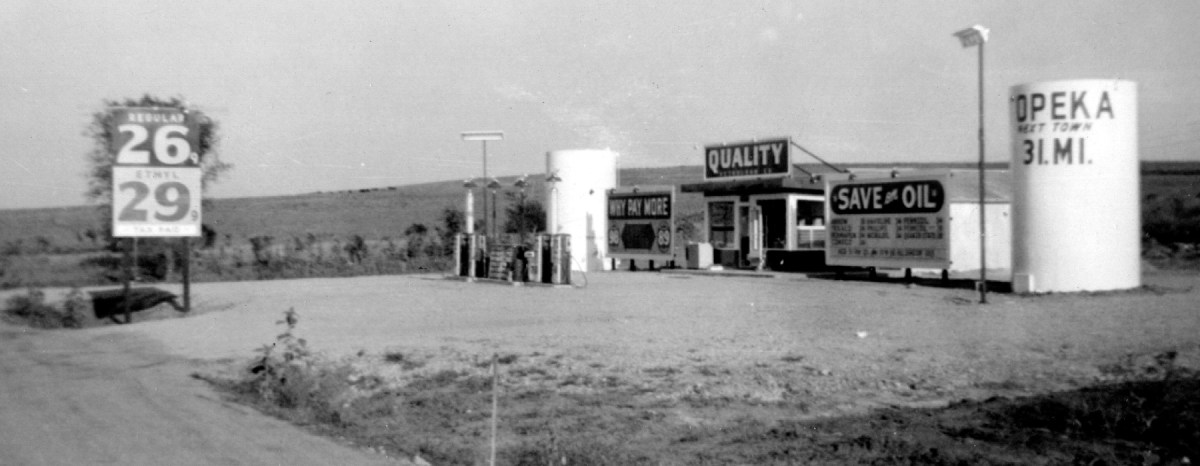 Jack Ginder built this gas station located three miles north of Alma on old Highway 40 in the late 1940s. Ginder owned numerous Quality Oil stations across Kansas. This station was razed when Interstate 70 was constructed, and a new Quality Oil station was built a quarter of a mile south on Kansas Highway 99. Jim Lewis operated both stations for over 30 years. Photo courtesy Linda Coon.
