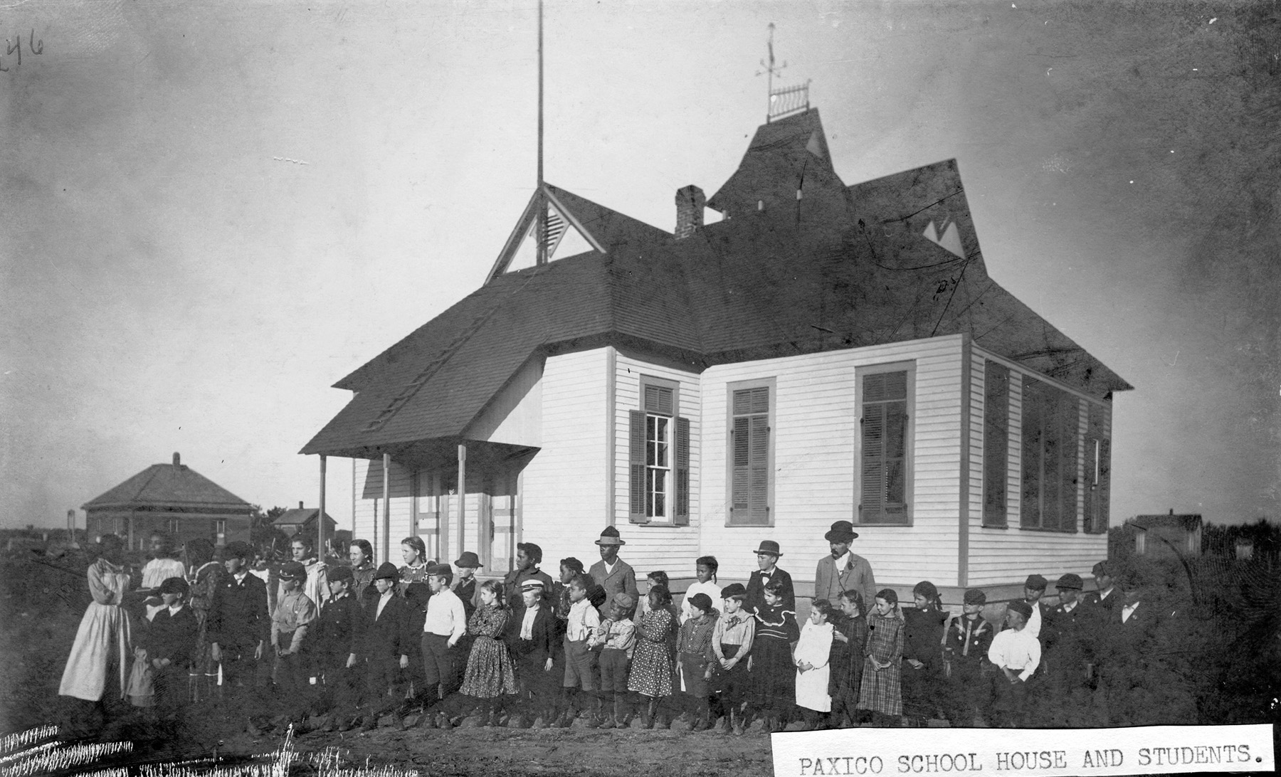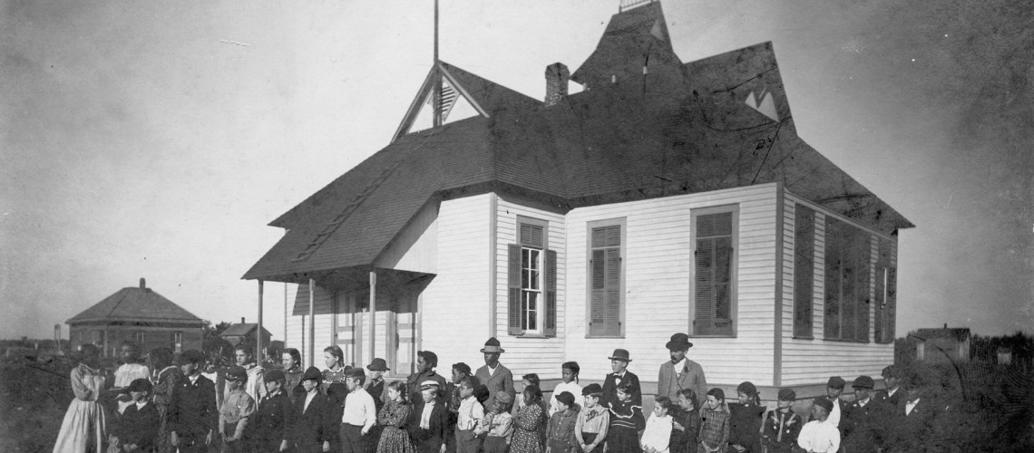 Pavilion School boys enjoy a game of marbles during recess. This photo, dated 1936 identifies the boys, left to right as Dan Glover, Dale Feyh, Dale Townsend and Bill Ekart.
