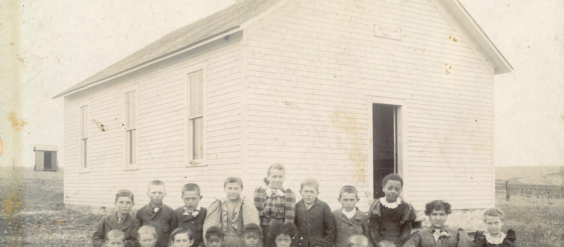Students from District 88, the Fairview School, located in the southeast corner of Mill Creek Township, pose for their school photo with their teacher, Alma Day.